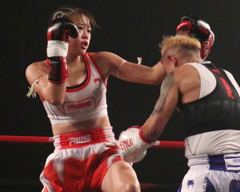 パンチを当てる藤原
