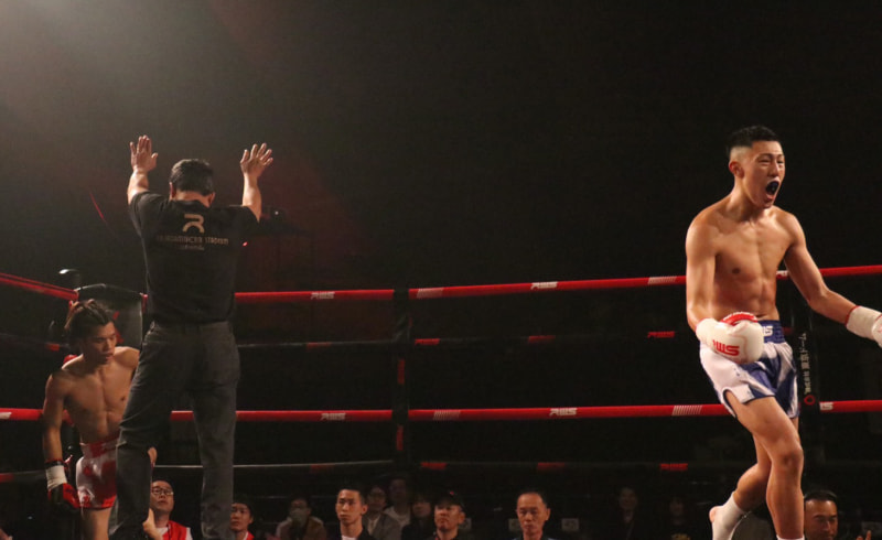 老沼(左)2度目のダウン、シンイチ(右)がKO勝ち