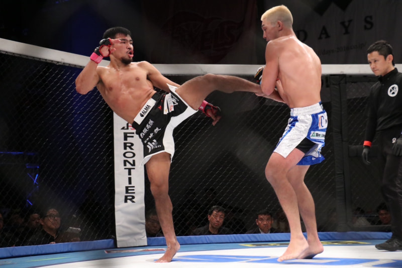 ミドルを蹴って行く西川