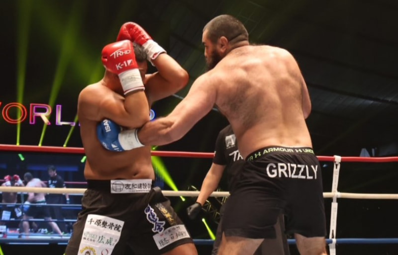 強烈な左を当てるイストラテ