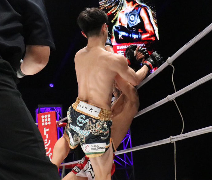 膝蹴りを放つ吉成