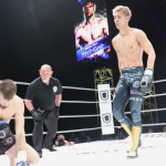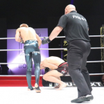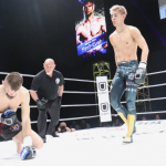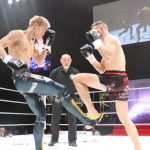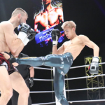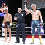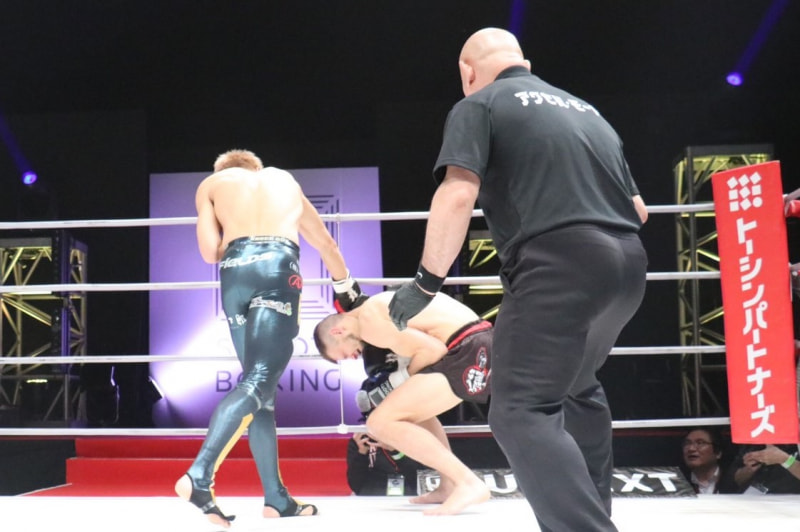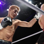 左をヒットさせ2度目のダウンを奪う海人