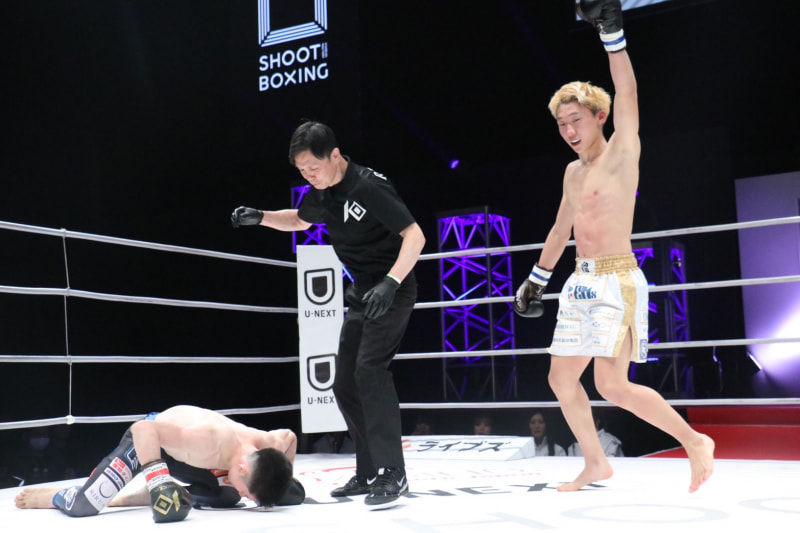 佐藤(左)が2度目のダウン、バッタリと倒れる