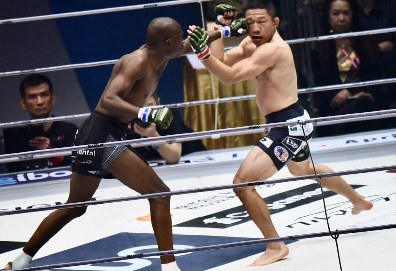 ズールーのパンチが堀口にヒット