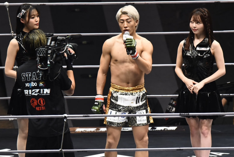 勝利者マイクでコメントする冨澤