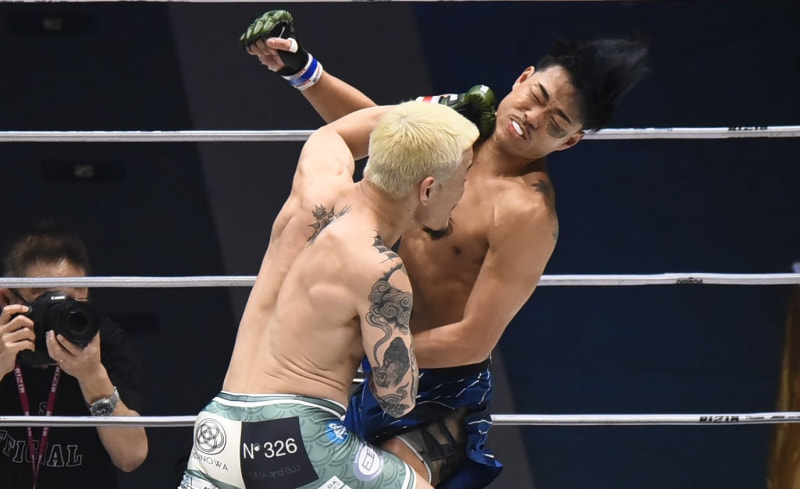 福田が強烈な左を叩き込む