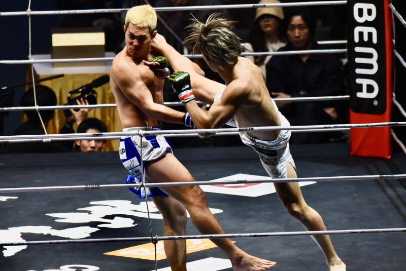 ハイキックで攻める細川