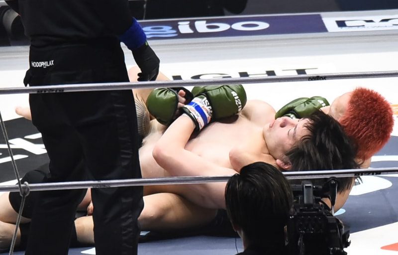 横内(右)が斉藤にチョークを極める