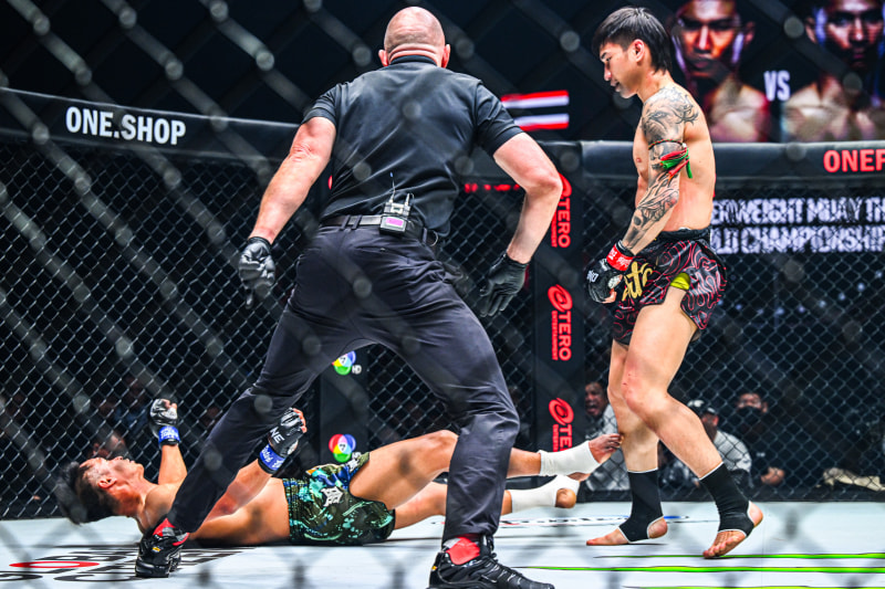 タワンチャイ、豪打爆発でスーパーボンに3度のダウンを奪う©️ONE