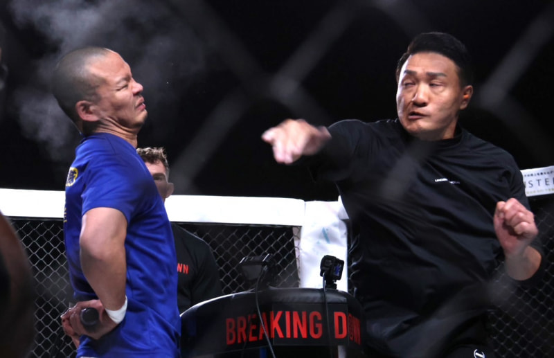 ダイスケ(左)が誠(右)のビンタに顔を歪める
