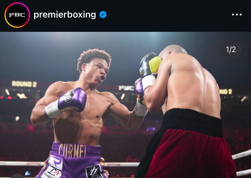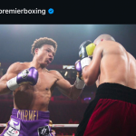 モートンが強烈な左を放つ(@premierboxingより)