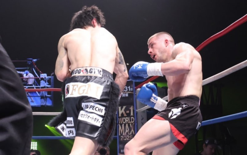 パンチをヒットさせる金子