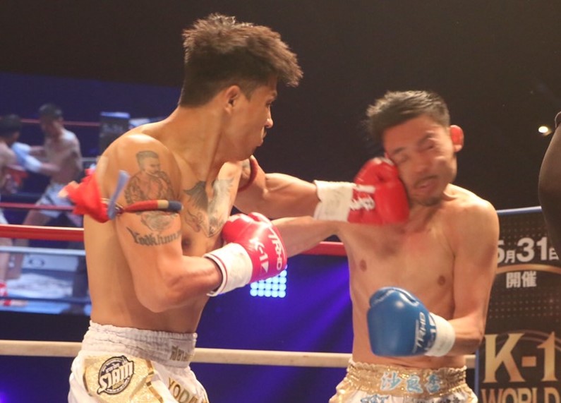 ヨードクンポンのパンチがヒット!鈴木の顔が歪む