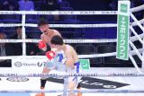 サウスポーの佐藤は足を使って外から右ジャブ、フック。1戦1勝の愛甲は、ガードを固め接近してはは上下。愛甲が詰め頭を抑えるようにフックアッパー滅多打ち、佐藤はボディワークでかわしては右を返すも下がり印象がよくない。