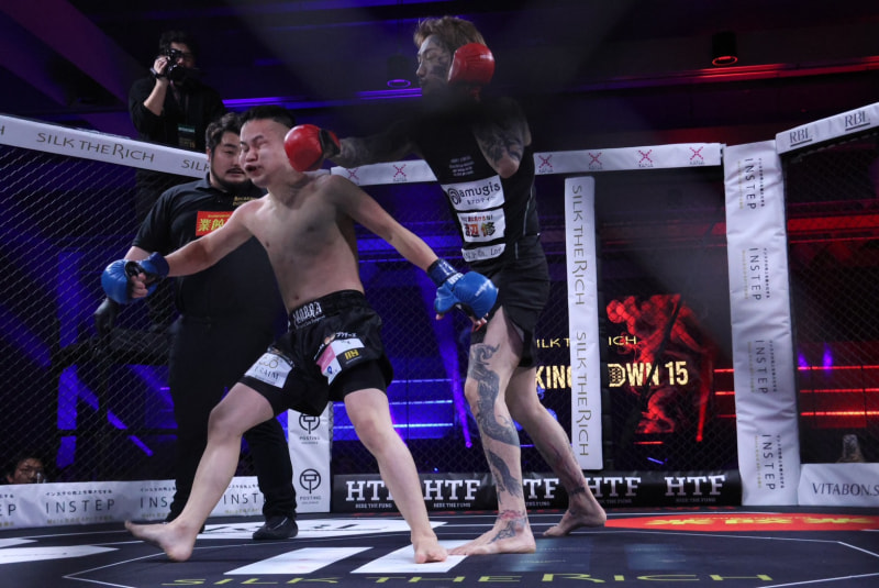 瓜田(右)のパンチがセーやにヒット