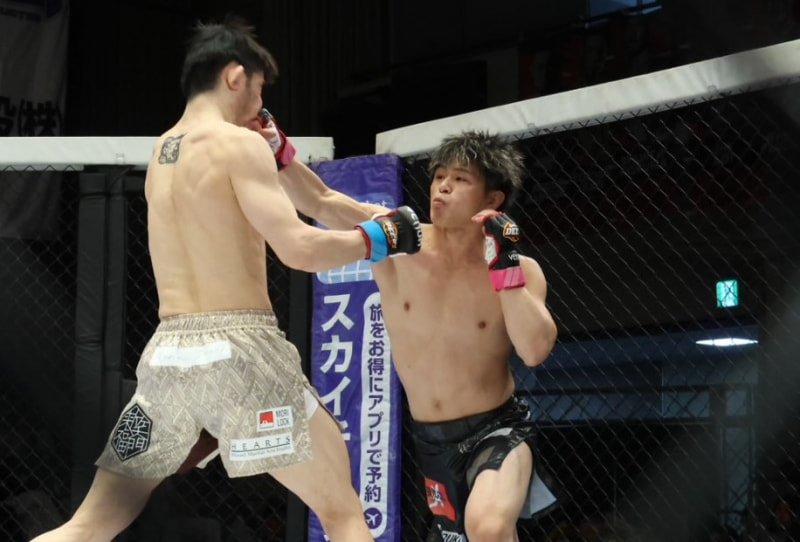 パンチを当てる奥山