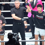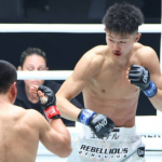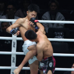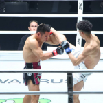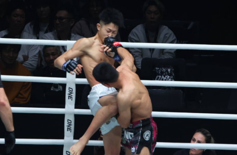 吉成の膝と相手のパンチが交錯する
