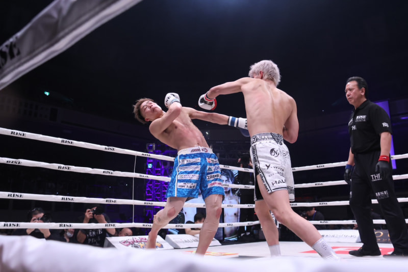 パンチで反撃する白鳥(右)