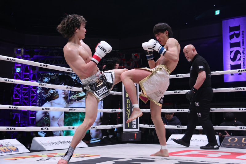 キックを繰り出す両者