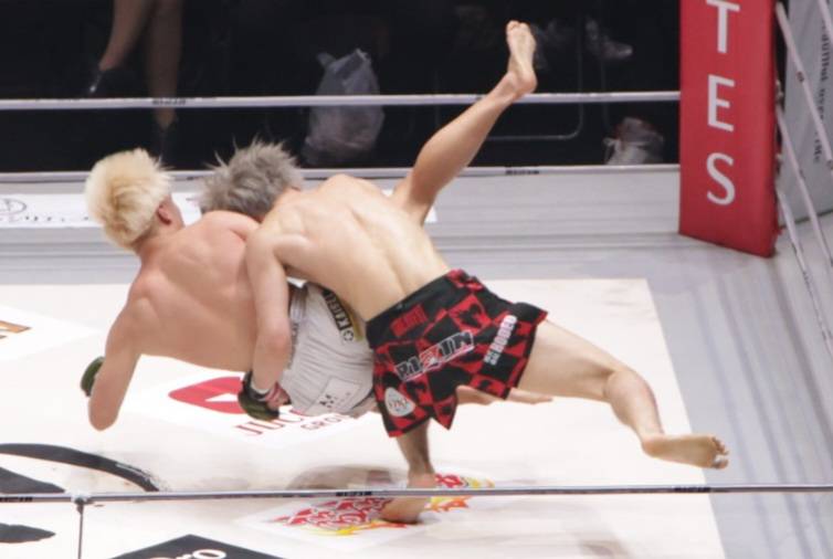 平本が田丸を持ち上げ投げる
