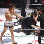 篠塚からダウンを奪うヒロヤ