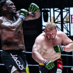 マレク(右)が巨体のジェームス(左)に勝利、次戦へ進出