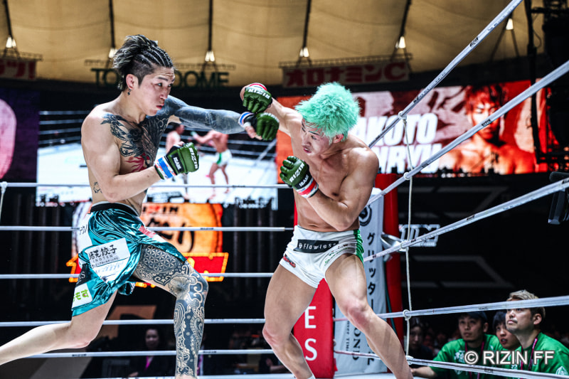 伊藤(左)と神龍(右)の打撃戦