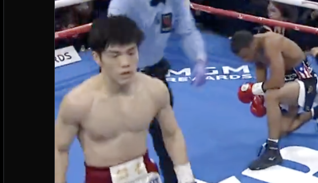 中野が5度のダウン奪いKO勝ち(@TOPRANK)