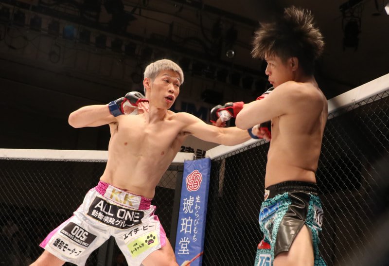 パンチを放つ直樹(左)