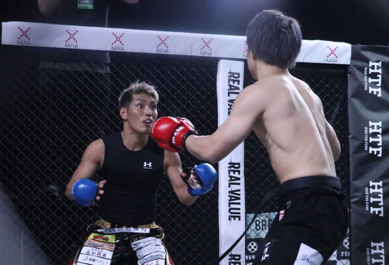 完全決着ルールの試合に挑む、よーでぃー(左)と大野(右)