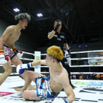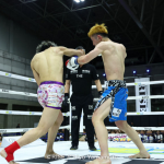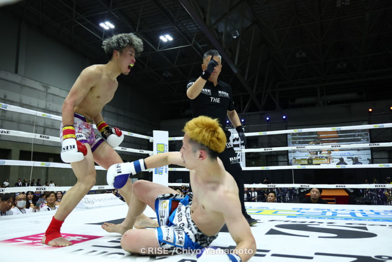 パンチでダウンを奪ったケルベロス(左)