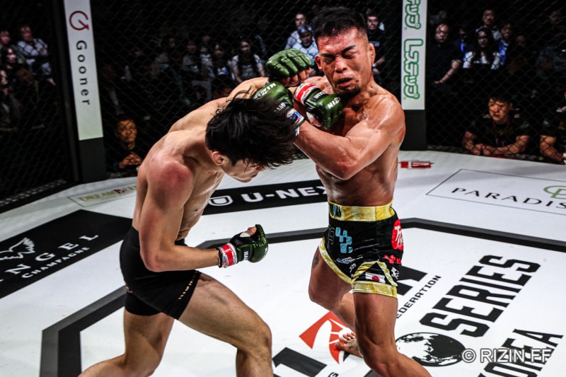 ヒョクミンのパンチがヒット、武田の顔が歪む