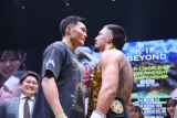 - 前王者リュウ・ツァー(左)とターザン(右)が睨み合う