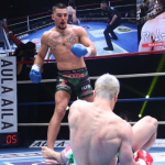 前王者リュウ・ツァー(左)とターザン(右)が睨み合う