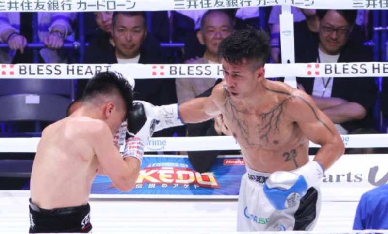 トラン(右)も攻勢を見せるも、坪井には当たらず
