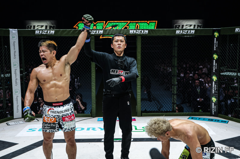 鈴木(左)が勝利、山本(右)はリングに膝をついた
