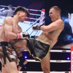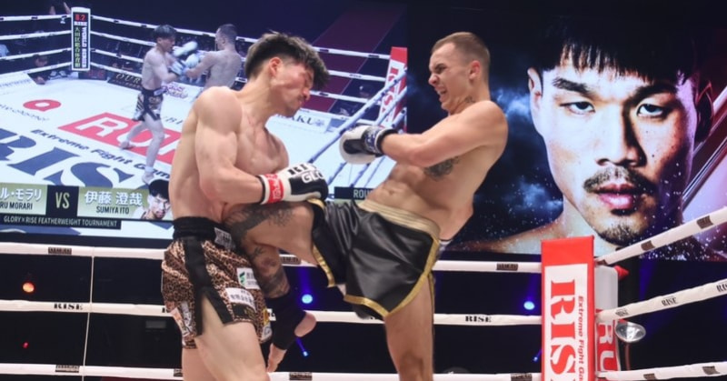 ヒザ蹴りを突き刺すモラリ