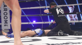- 福田が飛びヒザ蹴り!前田は仰向けにダウンした