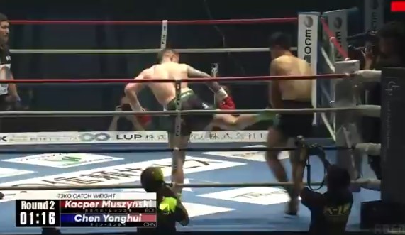ムシンスキのバックスピンキックが直撃