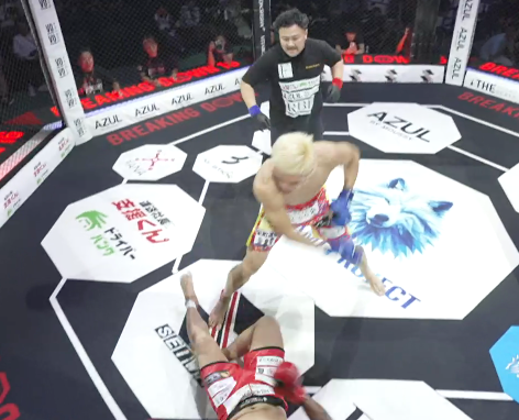 アゴを打ち抜かれた藤井は大の字ダウン、太陽が圧巻のKO勝利を飾った。勝利後、トレードマークのバック宙を連発した。