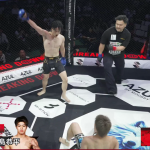 ドラゴンの左右フックで西島がダウン