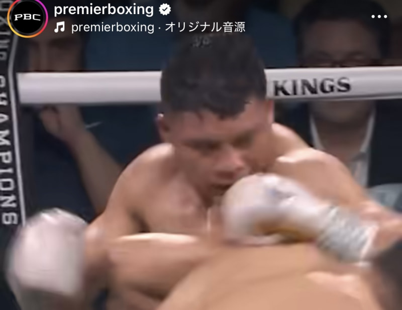 クリンチも構わず、連打するクルス(@premierboxingより)