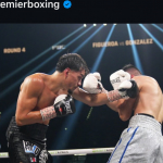 フィゲロアがゴンザレスに連打を叩き込む(@premierboxingより)