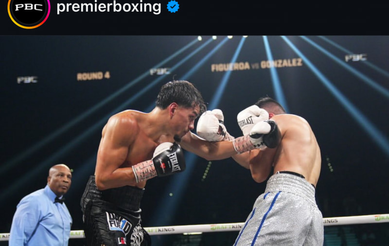 フィゲロアがゴンザレスに連打を叩き込む(@premierboxingより)