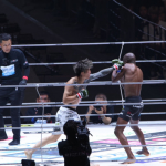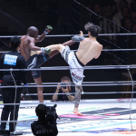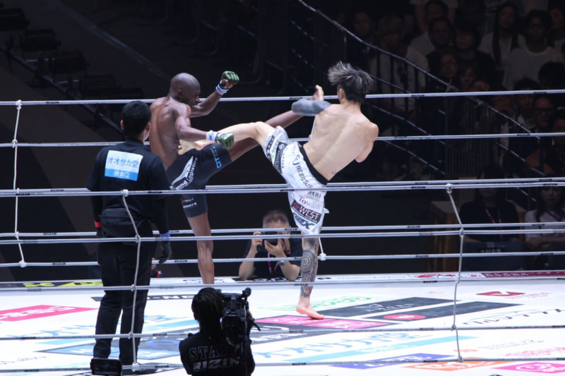 キックで攻め込む両者