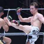 クレベルの寝技を防御しパウンドを放つ朝倉