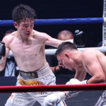 寺地(左)が王座から陥落、新王者サンドバル(右)は歓喜