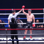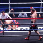 谷口の豪快な右フックがヒット