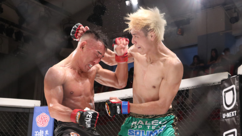 対する水野は7戦全勝の新鋭。3月の1回戦で元DEEPフェザー級王者の芦田崇宏に1R KO勝利を収め、準決勝では海飛と激闘し判定勝利した。