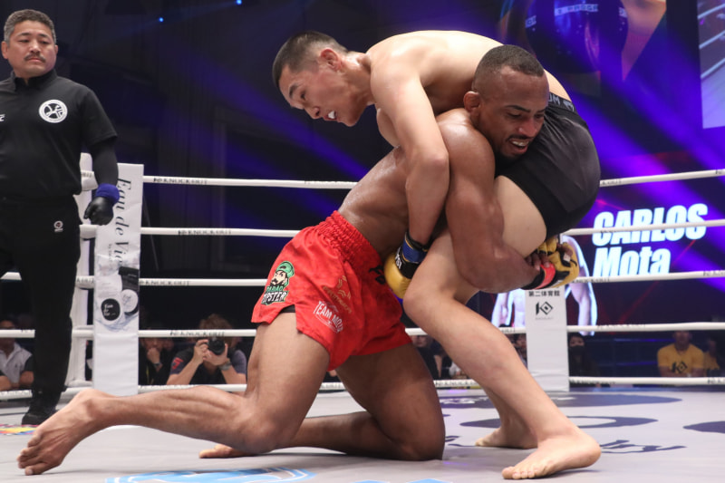 モタがダブルレッグからテイクダウン
